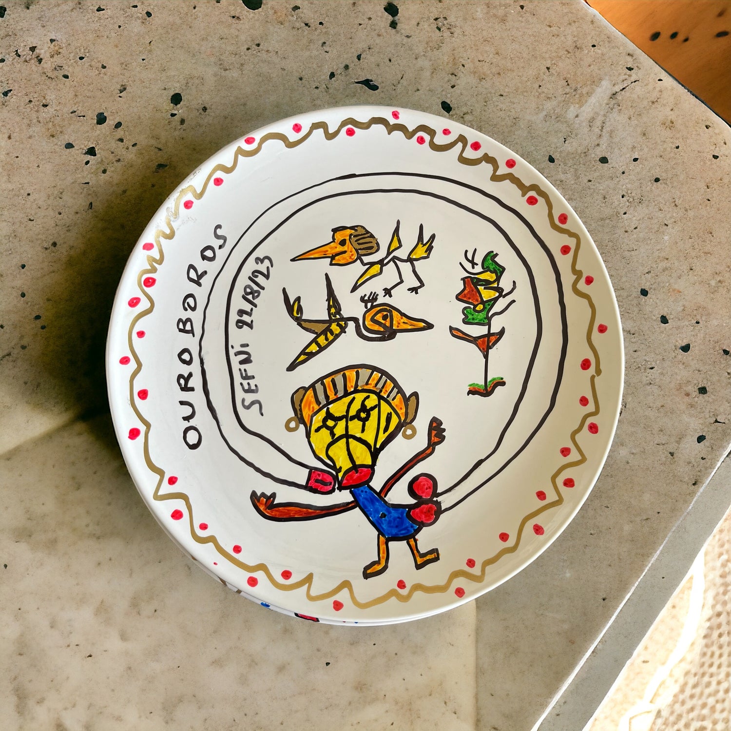 OUROBOROS, issu du grec, incarne notre concept artistique basé sur l'éternel recommencement. Inspiré du serpent qui se mord la queue, il symbolise le cycle perpétuel de création, destruction et régénération. Ancré dans une perspective nietzschéenne, notre travail explore la nature cyclique de l'existence, invitant à réfléchir sur les cycles de la vie, de la transformation et de la renaissance. Notre art capture la tension entre la finitude et l'éternité, offrant une méditation visuelle sur la nature paradoxale de notre existence, en jouant avec le politiquement correct.