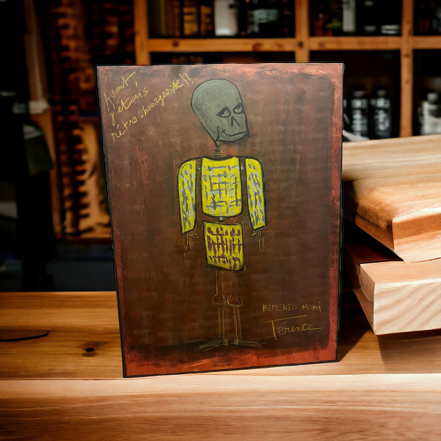 Le concept de Vanitas de Térence s'érige comme une critique subtile et ironique du comportement humain face au matérialisme et à la communication des grandes sociétés de mode modernes. L'humour, habilement intégré dans chaque œuvre, dénonce l'absurdité de nos préoccupations matérielles et questionne la superficialité de notre engagement envers les normes imposées par l'industrie de la mode contemporaine. Les mots "MEMENTO MORI" agissent comme un rappel constant de la fragilité de la vie humaine, invitant le spectateur à méditer sur l'éphémère et à se confronter à l'inéluctabilité de la mort. Cette phrase latine, signifiant "rappelle-toi que tu mourras un jour", offre une dimension existentielle à chaque tableau, incitant le regardeur à réfléchir sur sa propre existence dans le contexte des vanités modernes.